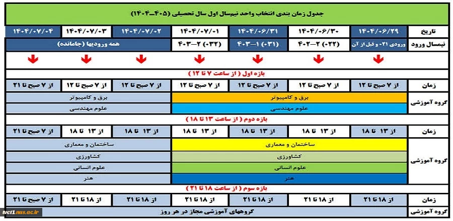 امتیاز دهید : جدول زمانبندی انتخاب واحد نیمسال اول سال تحصیلی ۱۴۰5 - ۱۴۰4 (مهر ۱۴۰4) 2 سهشنبه 25 شهریور 1404 ساعت 7:03