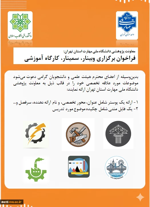 امتیاز دهید : دعوت به همکاری جهت برگزاری وبینار، سمینار و کارگاه آموزشی 2 سهشنبه 25 شهریور 1404 ساعت 12:38