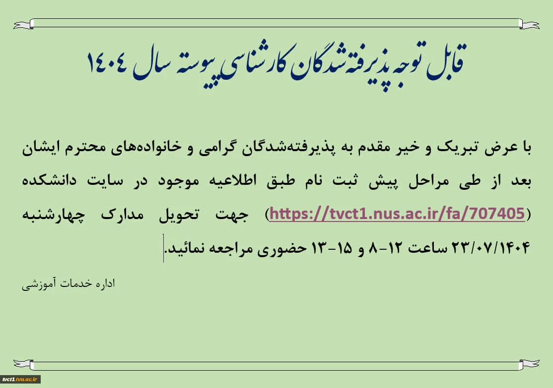 قابل توجه پذیرفتهشدگان کارشناسی پیوسته سال 1404 2