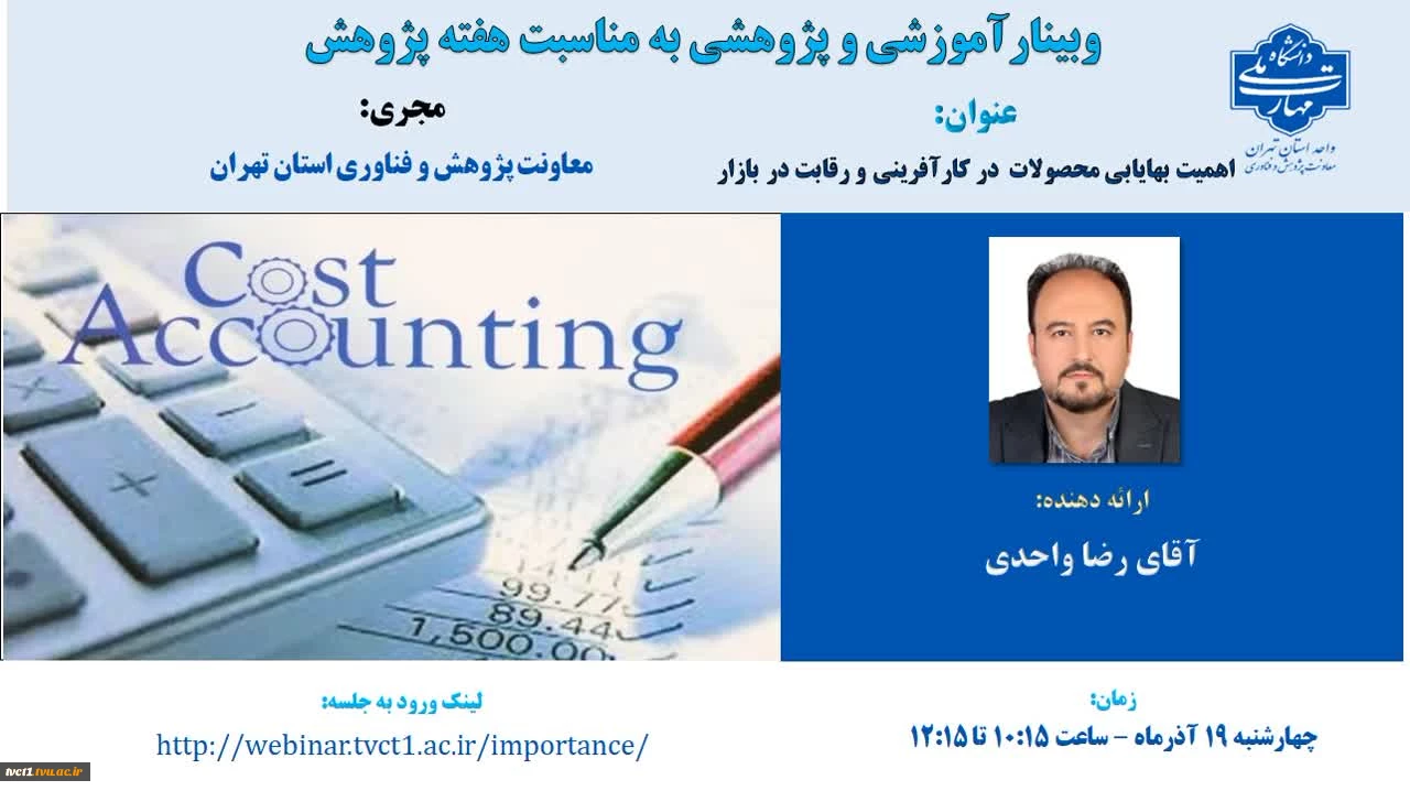 امتیاز دهید : وبینار آموزشی اهمیت بهایابی محصولات در کارآفرینی و رقابت در بازار 2 چهارشنبه 19 آذر 1404 ساعت 9:14